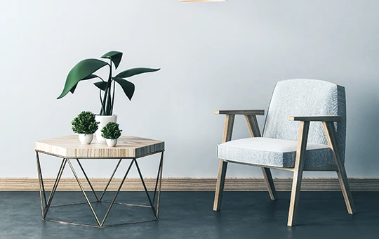 Combine wood, metal, textiles, and stone to add depth and character to your interior.